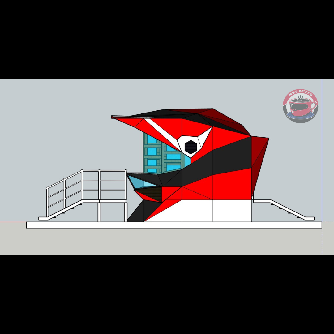 Sharp triangular facets and low-poly geometry introduce a deconstructivist language, conveying speed, motion, and aggression even when the structure is stationary. The form instantly captures attention and establishes a strong visual identity.