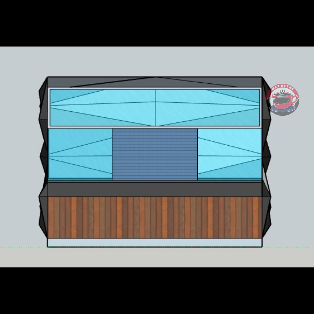 The faceted matte-black exterior delivers a clean, stealth-inspired aesthetic, while the integration of glass panels and a warm wood-finished base introduces balance—making the design feel both high-tech and welcoming.