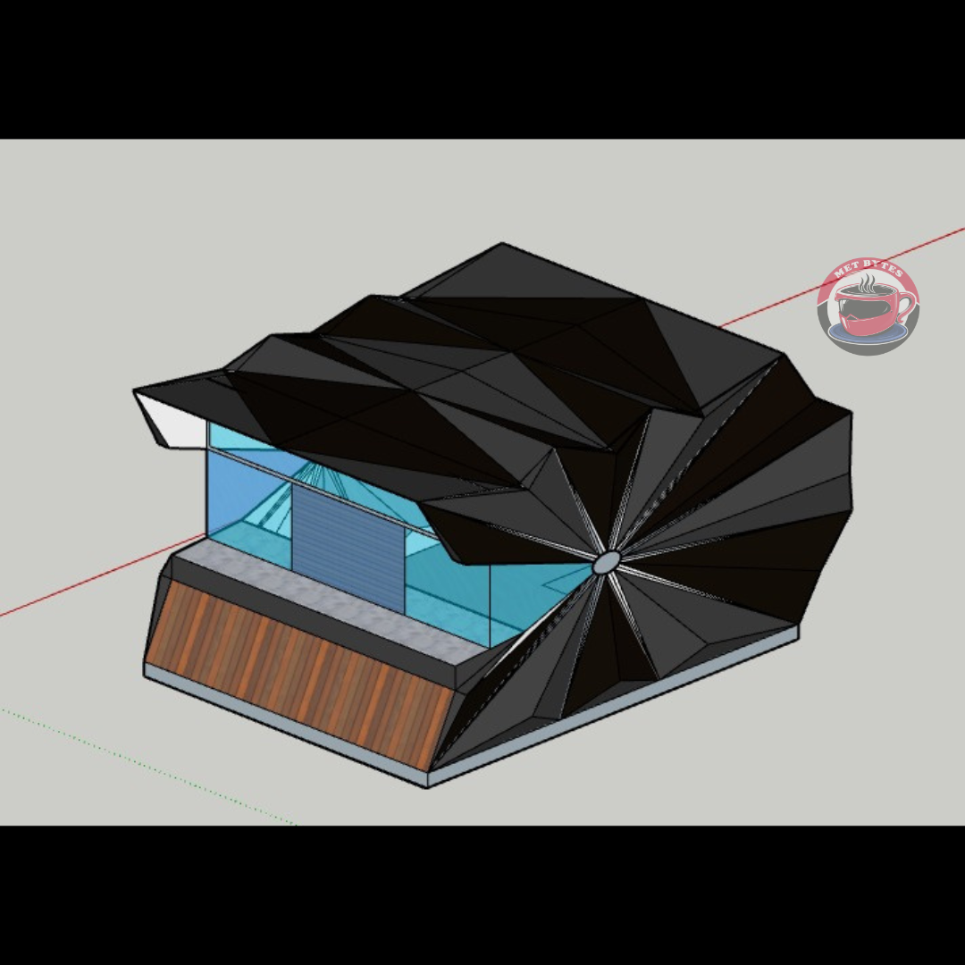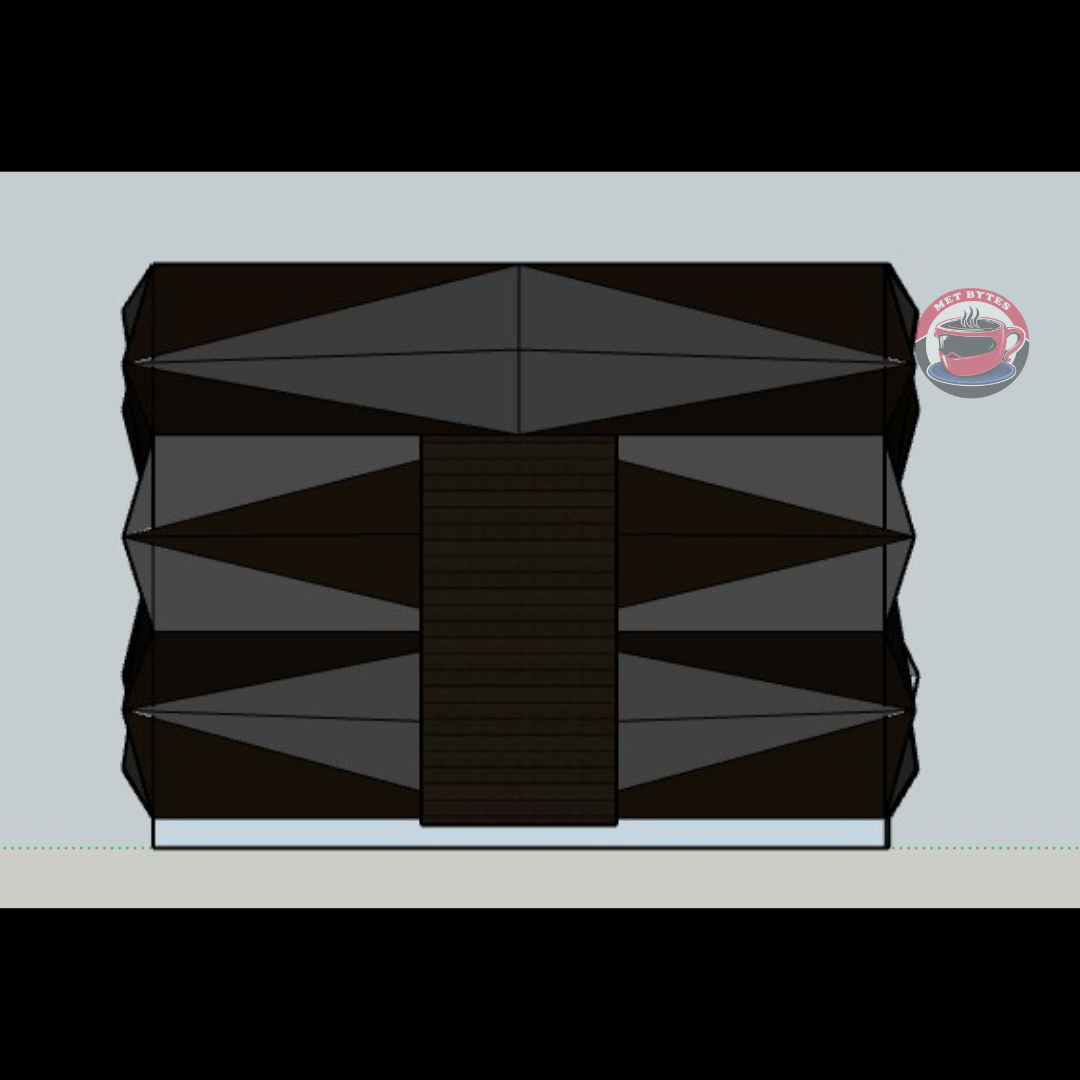 The faceted matte-black exterior delivers a clean, stealth-inspired aesthetic, while the integration of glass panels and a warm wood-finished base introduces balance—making the design feel both high-tech and welcoming.
