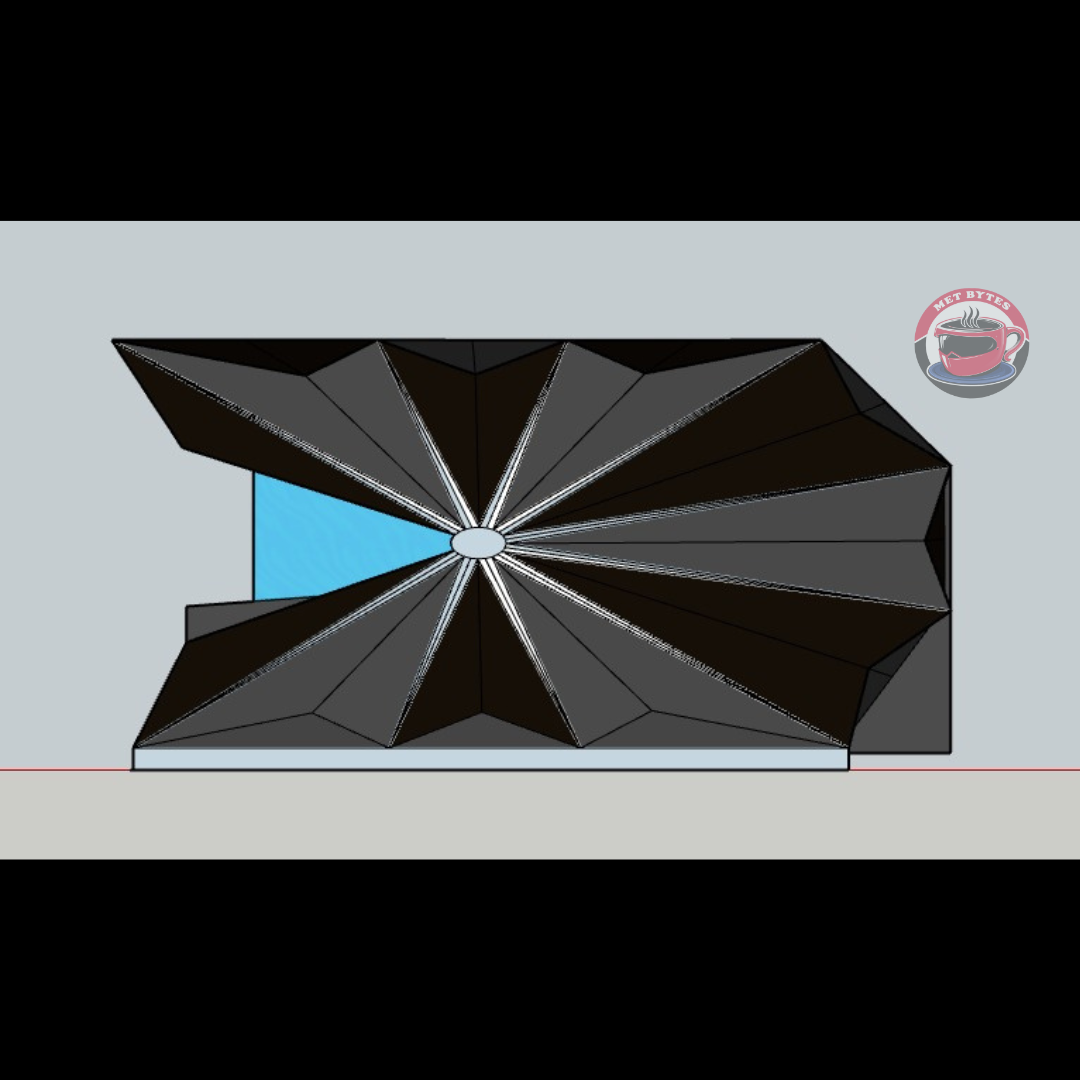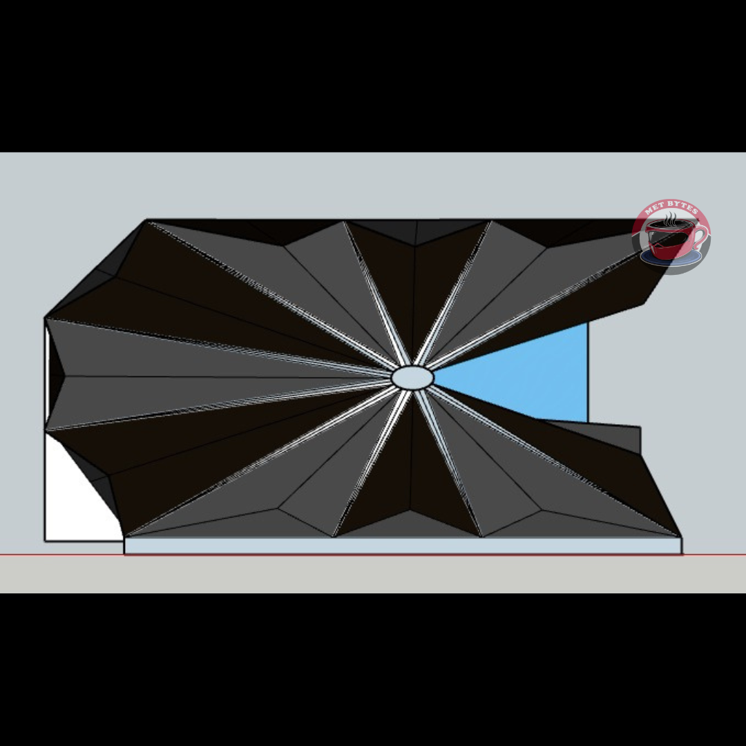 HEXORA features a striking architectural form inspired by a mechanical iris or camera shutter. Its radial geometry creates a powerful visual focal point, instantly drawing attention and positioning the structure as a premium, futuristic landmark.